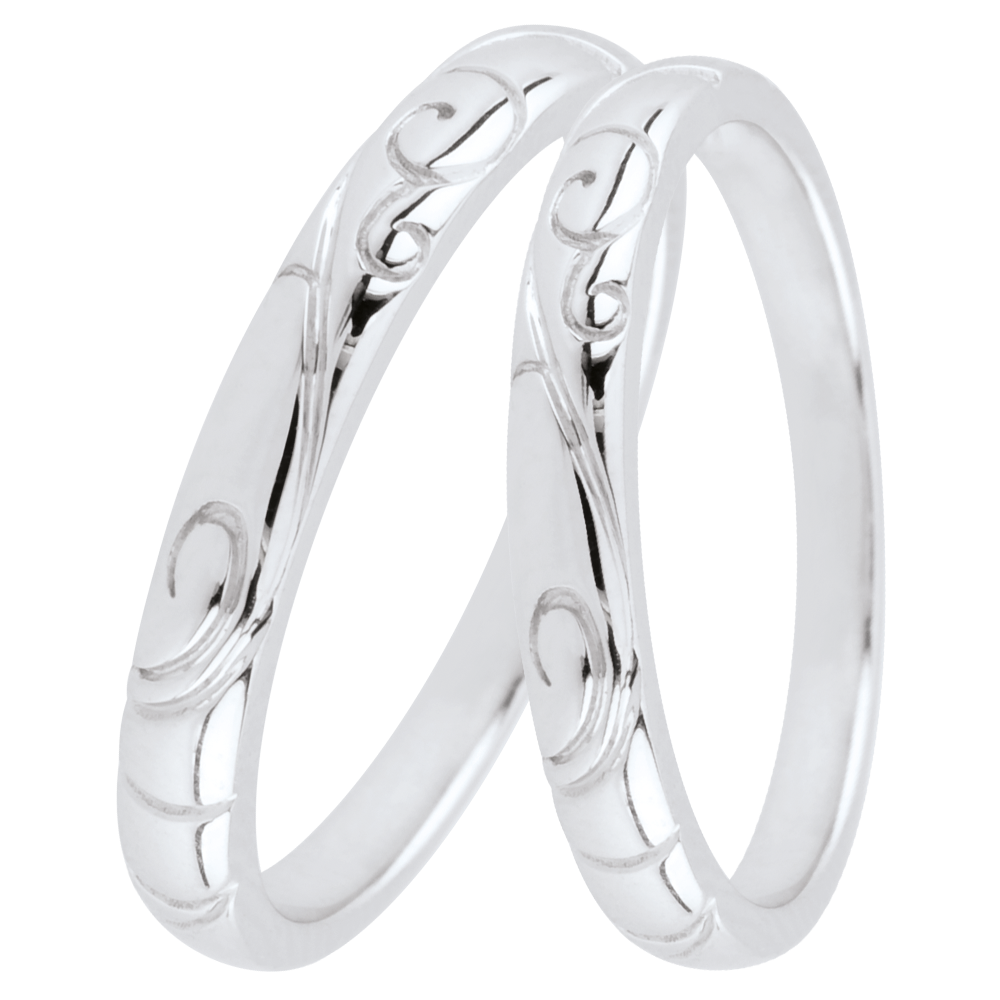 O pereche elegantă de verighete evidențiată prin finețea volutei și arabescurilor din aur. Perfecțiunea detaliilor pentru un legământ de excepție.…