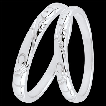 Un duo elegant de verighete evidențiat prin finețea volutei și a arabescurilor din aur. Creat pentru cei care apreciază rafinamentul absolut.