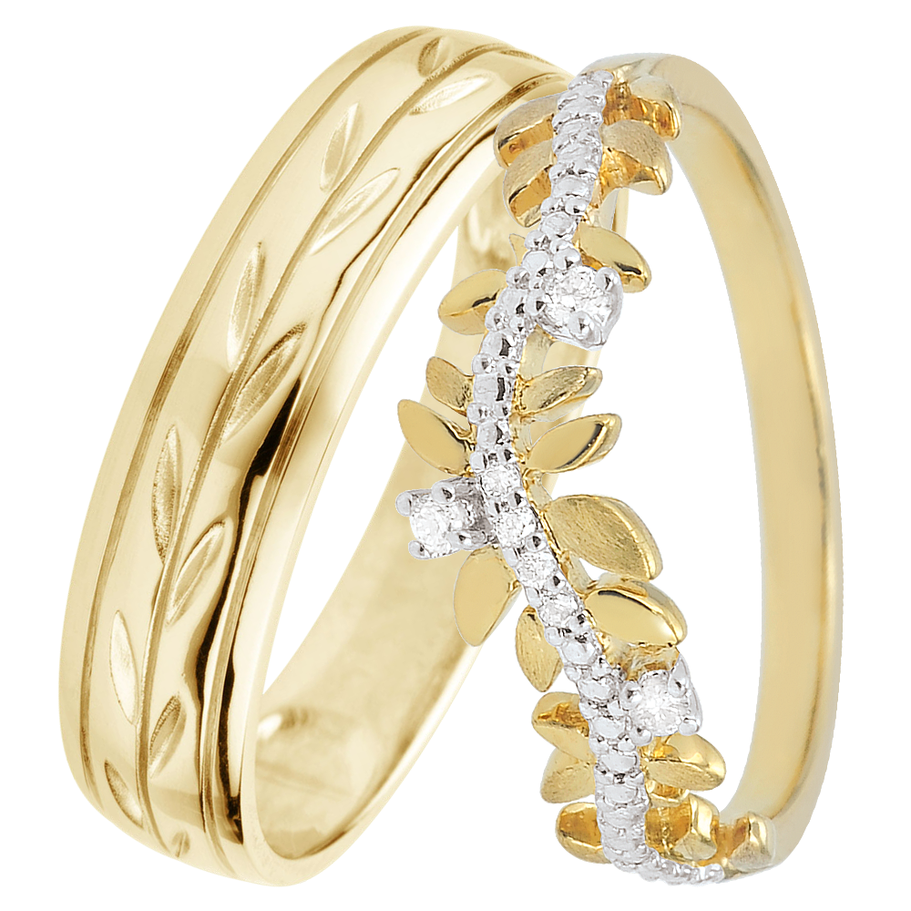DUO INELE JARDIN ENCHANTé – AUR GALBEN & DIAMANTE – 18 CARATE