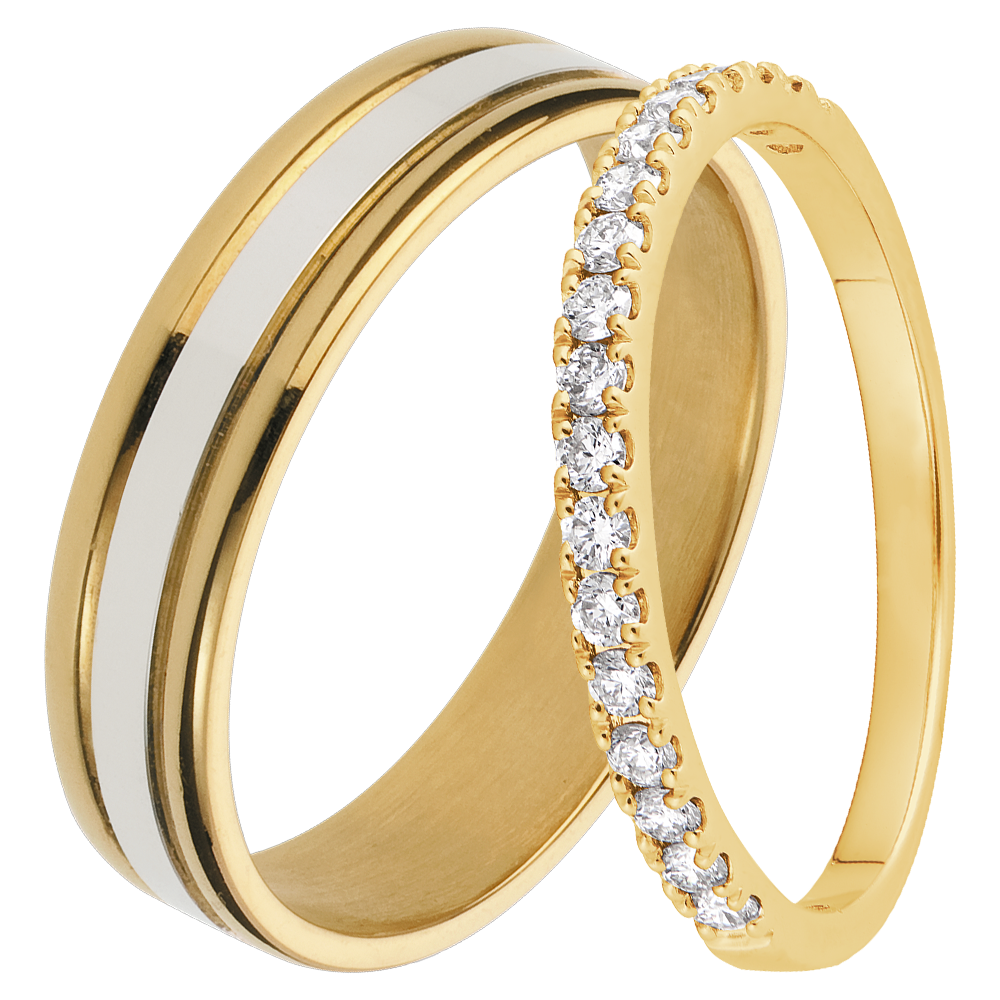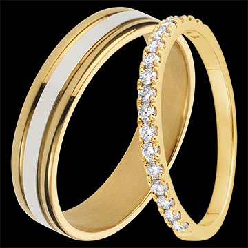 Duo verighete Esther & Bettina – aur alb și galben & aur galben și diamante – 18 carate