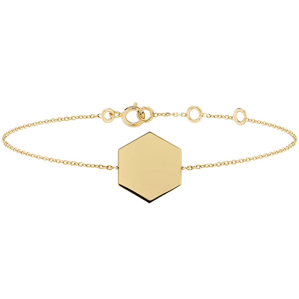 Brățară cu medalion hexagonal de gravat - Aur galben 9 carate