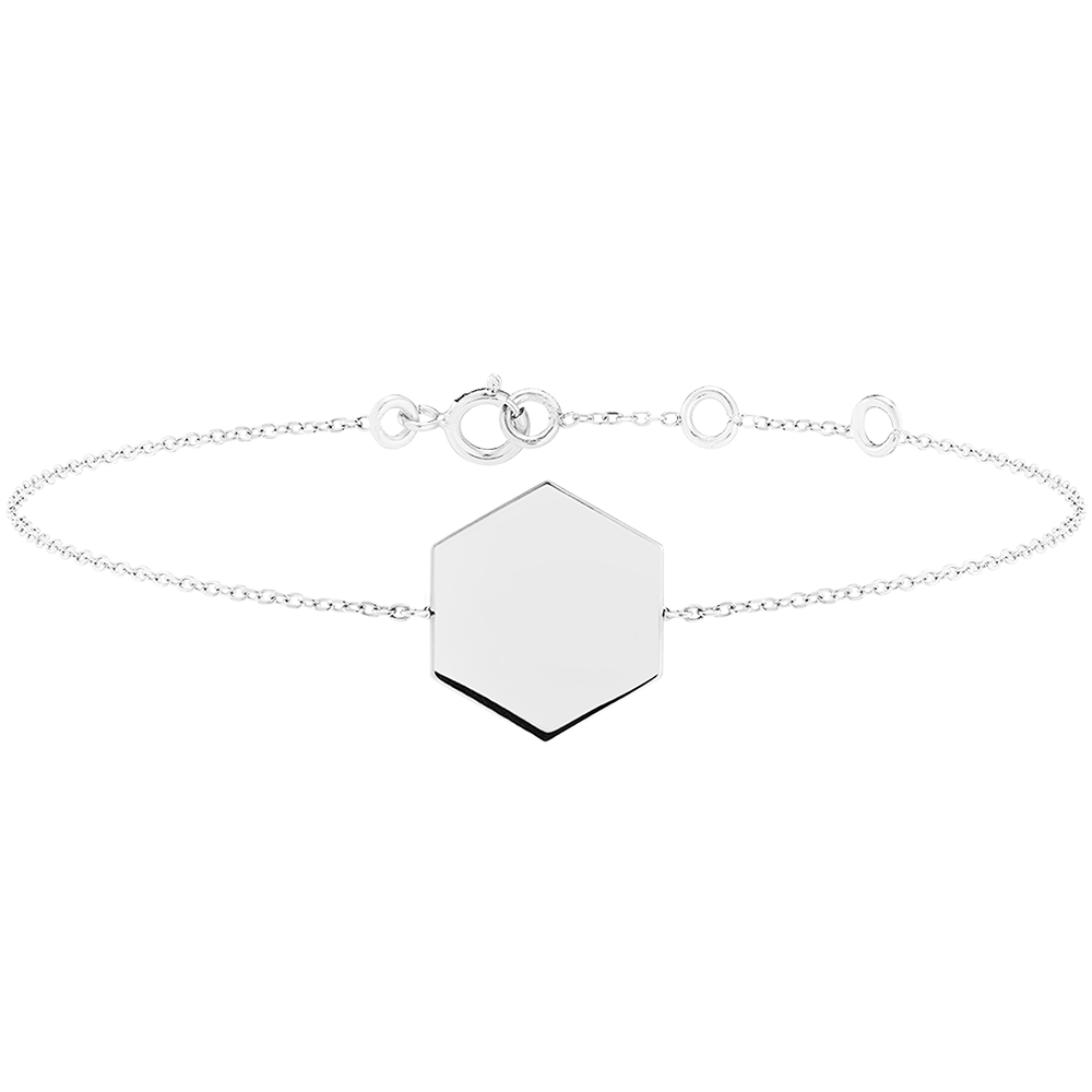 Brățară cu medalion hexagonal de gravat - Aur alb 18 carate