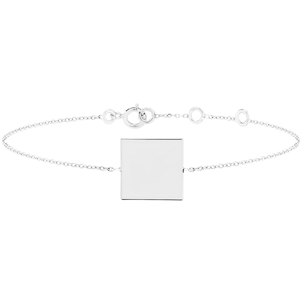 Brățară cu medalion pătrat de gravat - Aur alb 18 carate