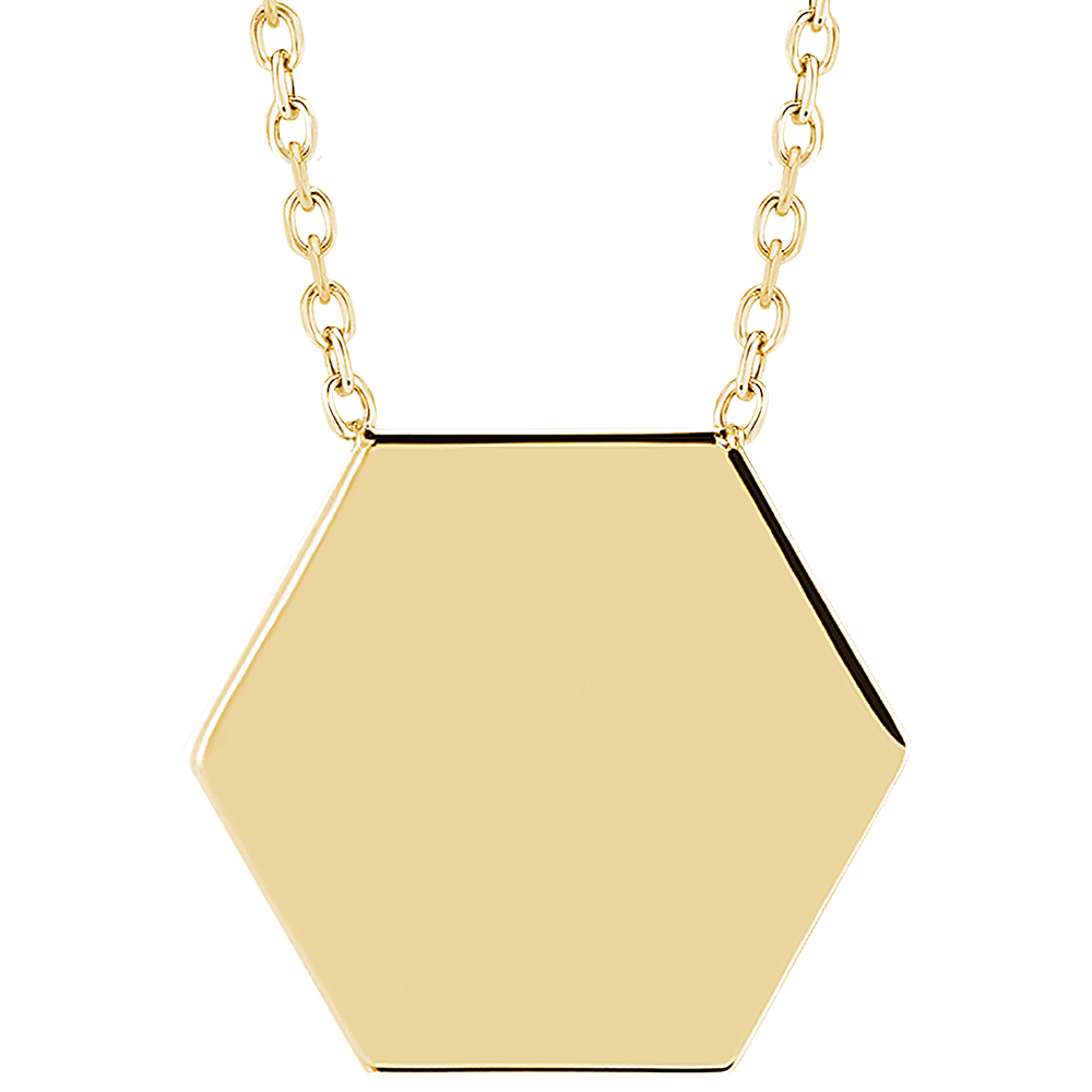 Colier cu medalion hexagonal de gravat - Aur galben 9 carate