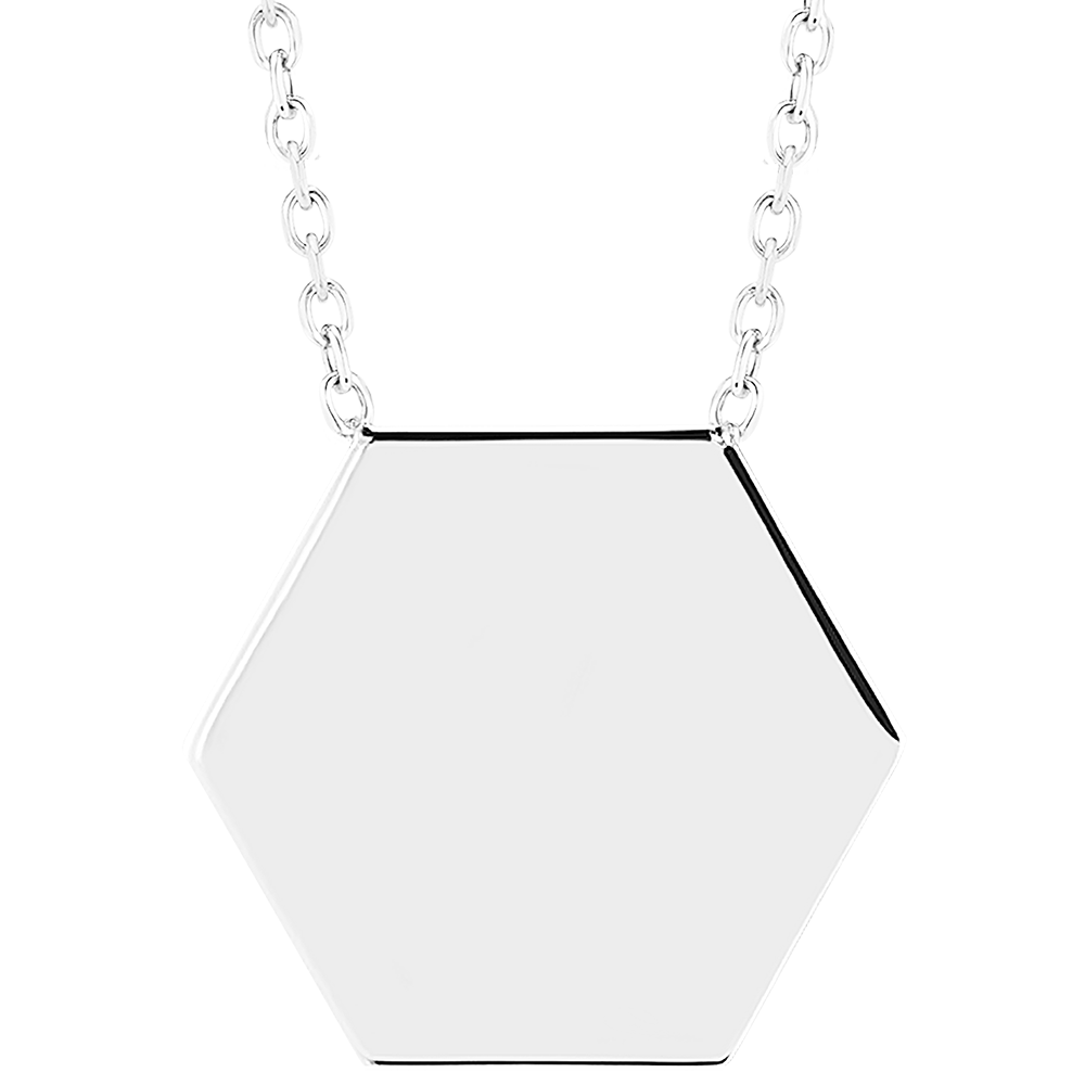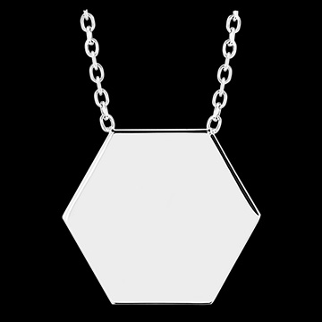 Colier cu medalion hexagonal de gravat - Aur alb 9 carate