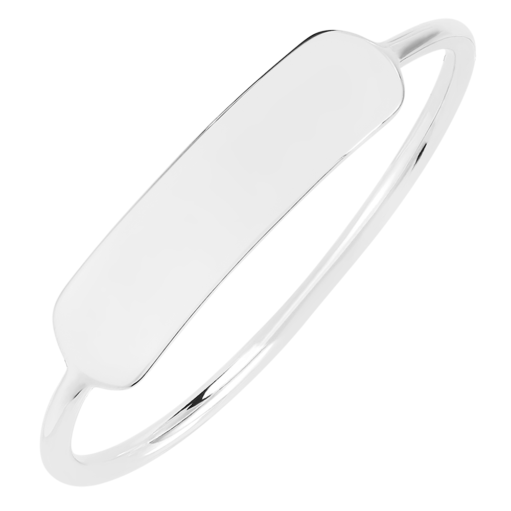 Descoperiţi acest inel subţire din aur alb de 9 carate, cu un medalion dreptunghiular neted, ideal pentru gravură personalizată.