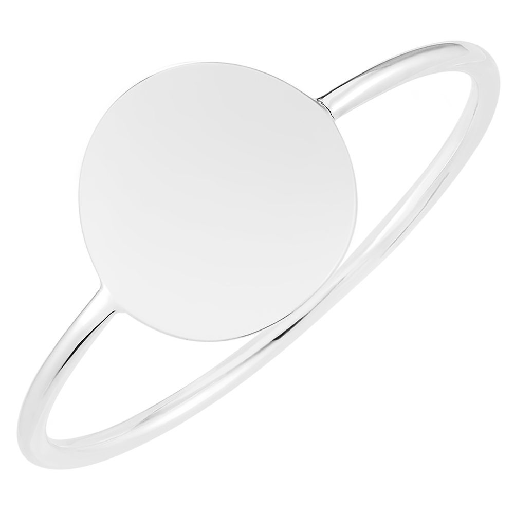 Inel cu medalion rotund de gravat - Aur alb 9 carate