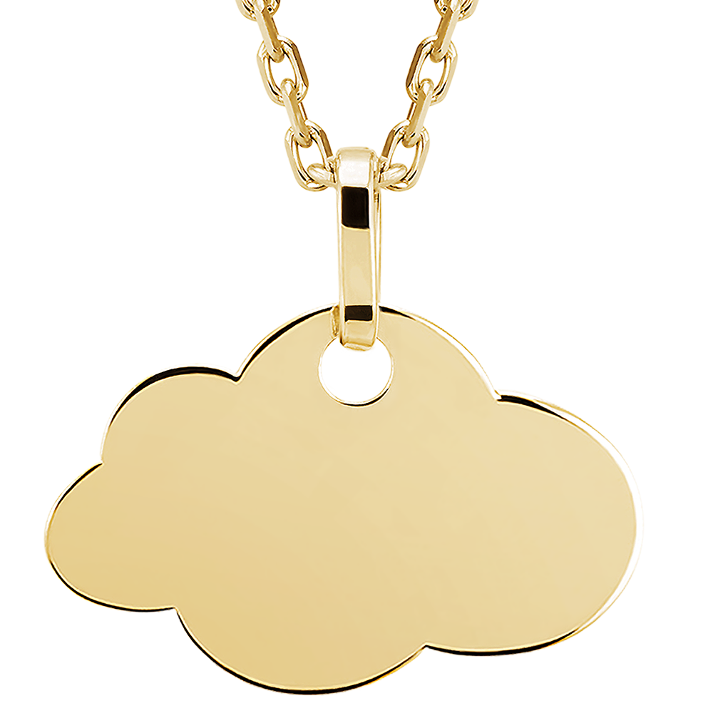 Acest pandantiv prezintă un medalion în formă de nor, realizat din aur galben de 18 carate, cu un design simplu și elegant. Suprafața netedă este ideală pentru personalizare prin gravură.