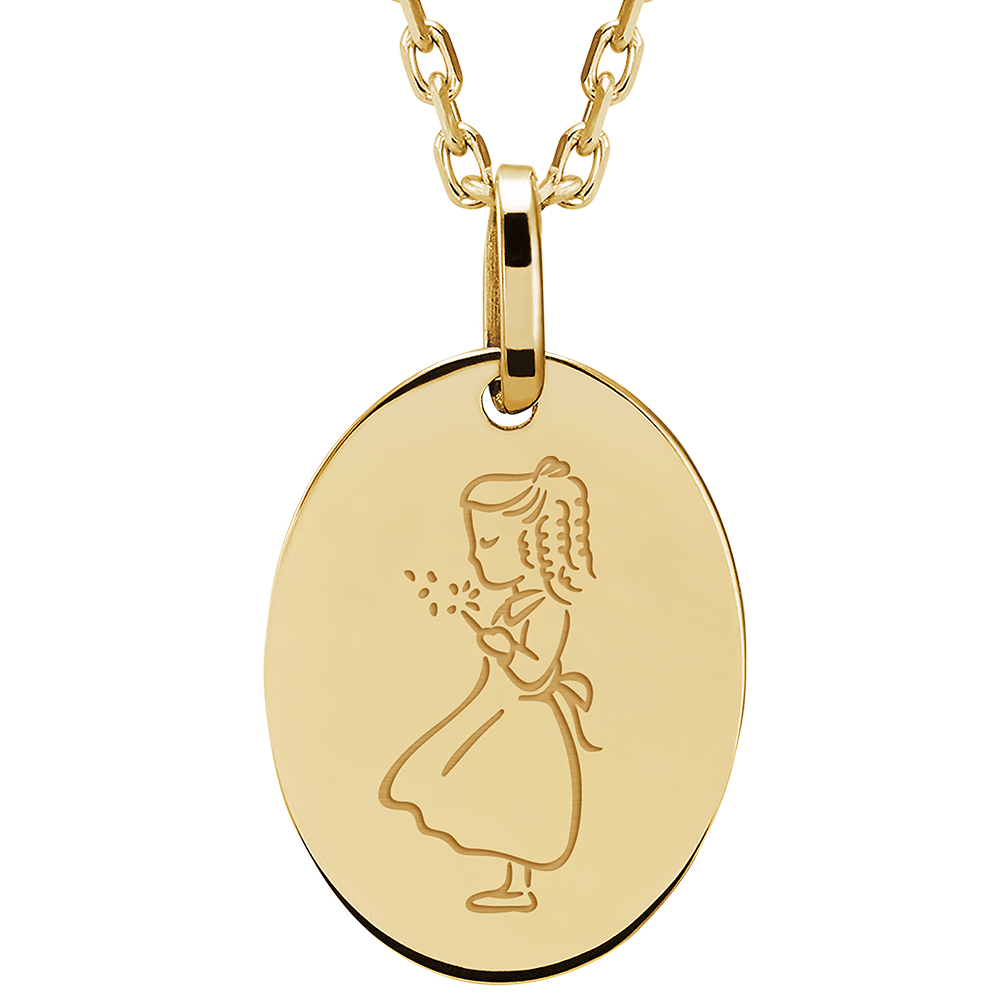 Acest pandantiv medalion oval din aur galben 9 carate exprimă o eleganță discretă și atemporală. Finisajul atent evidențiază calitatea aurului.