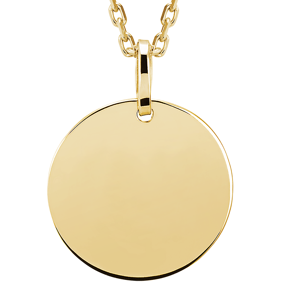 Un medalion din aur, ce poate fi personalizat după cum doriți, alegând dintre selecțiile de gravuri Edenly.