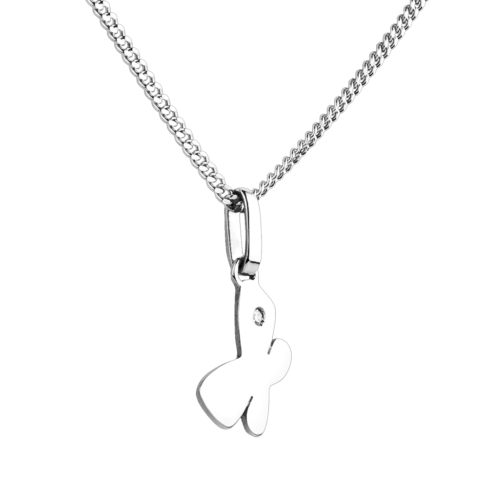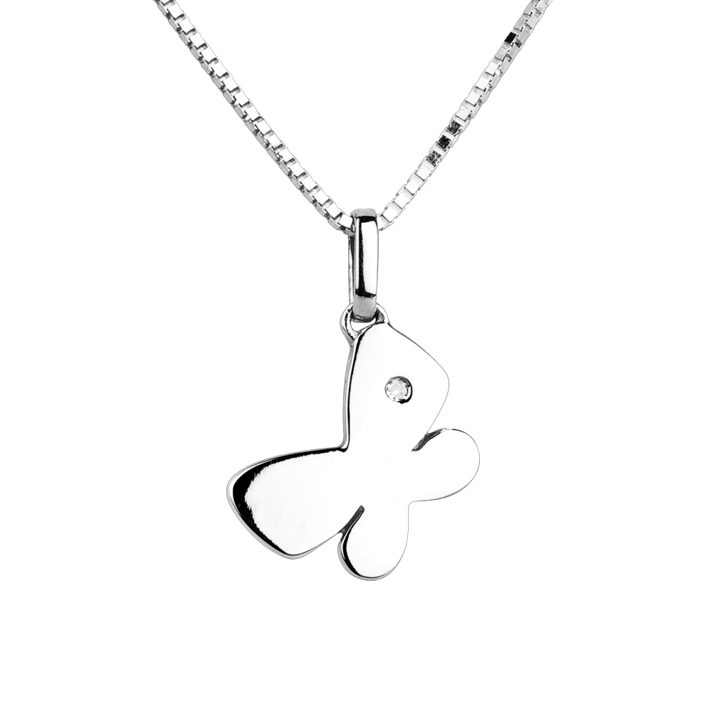 Un fluturaş din aur alb cu forme rotunde şi blânde a cărui aripă este decorată cu un diamant. Model mare
