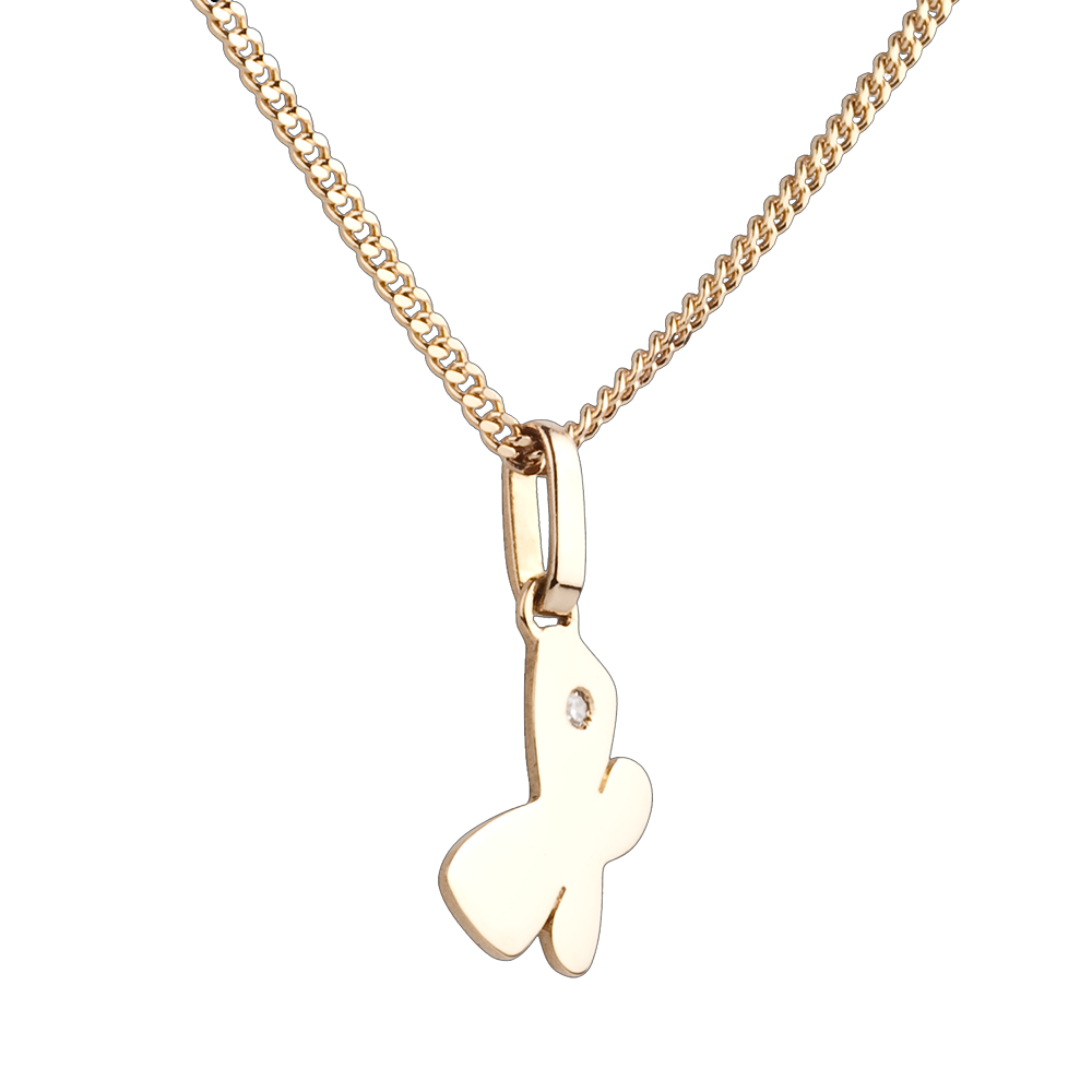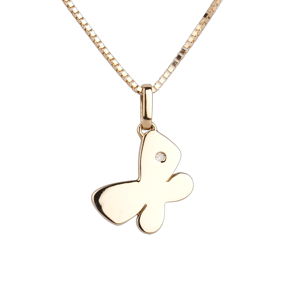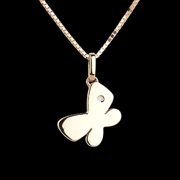 Un fluturaş din aur galben cu forme rotunde şi blânde a cărui aripă este decorată cu un diamant. Model mare