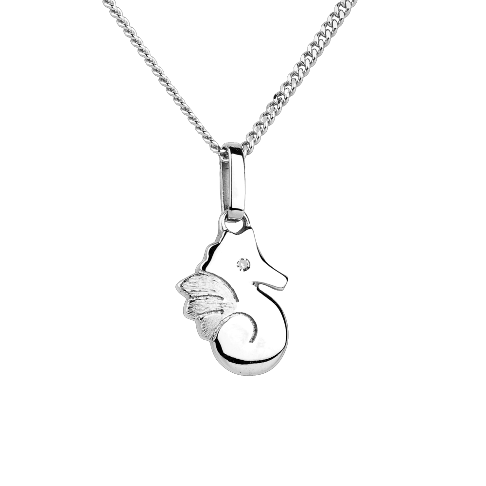Un căluţ de mare din aur alb este împodobit cu un diamant. Model mic