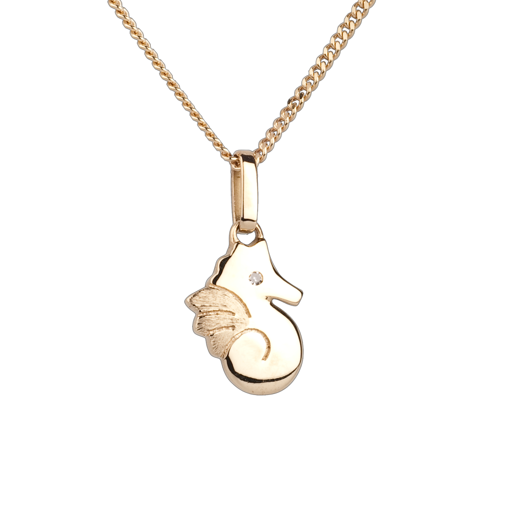 Un căluţ de mare din aur galben este împodobit cu un diamant. Model mic