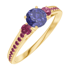 « L'ATELIER » NR. 161249Inel Aur galben 18 carate - Safir albastru Rotund 0.3 carate - Pietre laterale Rubin - Încrustare Rubin 4.5 (42)