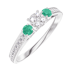 « L'ATELIER » NR. 209087Inel Aur alb 18 carate - Cluster de diamante naturale rotund echivalent 0.3 - Pietre laterale Smarald - Încrustare Diamant 4.5 (36)
