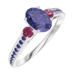 « L'ATELIER » NR. 163955Inel Aur alb 18 carate - Safir albastru Oval 0.5 carate - Pietre laterale Rubin - Încrustare Safir albastru 5 (4)