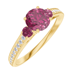 « L'ATELIER » NR. 163045Inel Aur galben 18 carate - Rubin rotund 0.5 carate - Pietre laterale Rubin - Încrustare Diamant 4.9 (16)