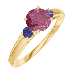 « L'ATELIER » NR. 163062Inel Aur galben 9 carate - Rubin rotund 0.5 carate - Pietre laterale Safir albastru 4.9 (16)