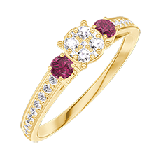 « L'ATELIER » NR. 209645Inel Aur galben 18 carate - Cluster de diamante naturale rotund echivalent 0.5 - Pietre laterale Rubin - Încrustare Diamant 4.5 (16)