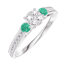 « L'ATELIER » NR. 209687Inel Aur alb 18 carate - Cluster de diamante naturale rotund echivalent 0.5 - Pietre laterale Smarald - Încrustare Diamant 4.5 (16)