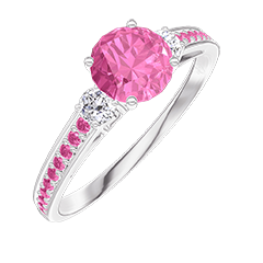 « L'ATELIER » NR. 312296Inel Aur alb 9 carate - Safir roz rotund 0.5 carate - Pietre laterale Diamant - Încrustare Safir roz 4.5 (16)