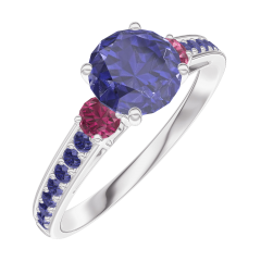« L'ATELIER » NR. 166056Inel Aur alb 9 carate - Safir albastru rotund 0.7 carate - Pietre laterale Rubin - Încrustare Safir albastru 4.9 (7)