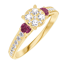 « L'ATELIER » NR. 210246Inel Aur galben 9 carate - Cluster de diamante naturale rotund echivalent 0.7 - Pietre laterale Rubin - Încrustare Diamant 4.9 (7)