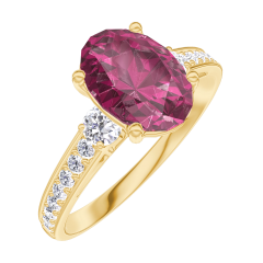 « L'ATELIER » NR. 168126Inel Aur galben 9 carate - Rubin Oval 1 carate - Pietre laterale Diamant - Încrustare Diamant 4.7 (9)