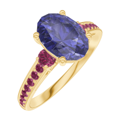 « L'ATELIER » NR. 168749Inel Aur galben 18 carate - Safir albastru Oval 1 carate - Pietre laterale Rubin - Încrustare Rubin 4.7 (10)