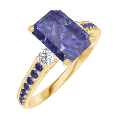 « L'ATELIER » NR. 168634Inel Aur galben 9 carate - Safir albastru Smarald 1 carate - Pietre laterale Diamant - Încrustare Safir albastru 4.5 (8)