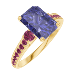« L'ATELIER » NR. 168650Inel Aur galben 9 carate - Safir albastru Smarald 1 carate - Pietre laterale Rubin - Încrustare Rubin 4.6 (5)