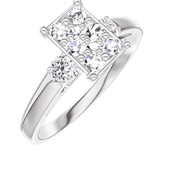 « L'ATELIER » NR. 211024Inel Aur alb 9 carate - Cluster de diamante naturale Smarald echivalent 1 - Pietre laterale Diamant 4.6 (5)