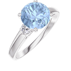 « L'ATELIER » NR. 199136Inel Aur alb 9 carate - Topaz albastru rotund 1 carate - Pietre laterale Diamant 4.8 (14)