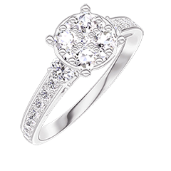 « L'ATELIER » NR. 210828Inel Aur alb 9 carate - Cluster de diamante naturale rotund echivalent 1 - Pietre laterale Diamant - Încrustare Diamant 4.8 (14)