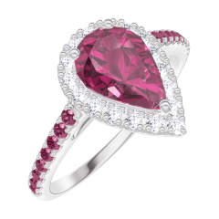 « L'ATELIER » NR. 170491Inel Aur alb 18 carate - Rubin Pară 0.5 carate - Halo Diamant - Încrustare Rubin 4.8 (13)