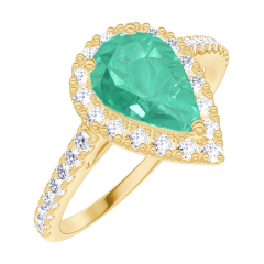 « L'ATELIER » NR. 171062Inel Aur galben 9 carate - Smarald Pară 0.5 carate - Halo Diamant - Încrustare Diamant 4.8 (13)