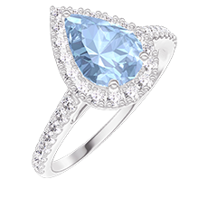 « L'ATELIER » NR. 212014Inel Aur alb 18 carate - Topaz albastru Pară 0.5 carate - Halo Diamant - Încrustare Diamant 4.8 (13)