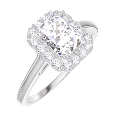 « L'ATELIER » NR. 170099Inel Aur alb 18 carate - Diamant Smarald 0.5 carate - Halo Diamant 4.7 (46)