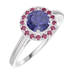 « L'ATELIER » Nº170595Inel Aur alb 18 carate - Safir albastru rotund 0.5 carate - Halo Rubin 4.7 (18)