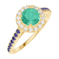 « L'ATELIER » NR. 170877Inel Aur galben 18 carate - Smarald Rotund 0.5 carate - Halo Diamant - Încrustare Safir albastru 5 (18)
