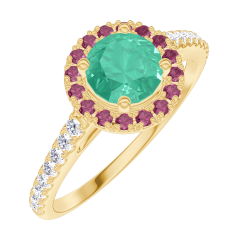 « L'ATELIER » NR. 170885Inel Aur galben 18 carate - Smarald rotund 0.5 carate - Halo Rubin - Încrustare Diamant 4.7 (18)