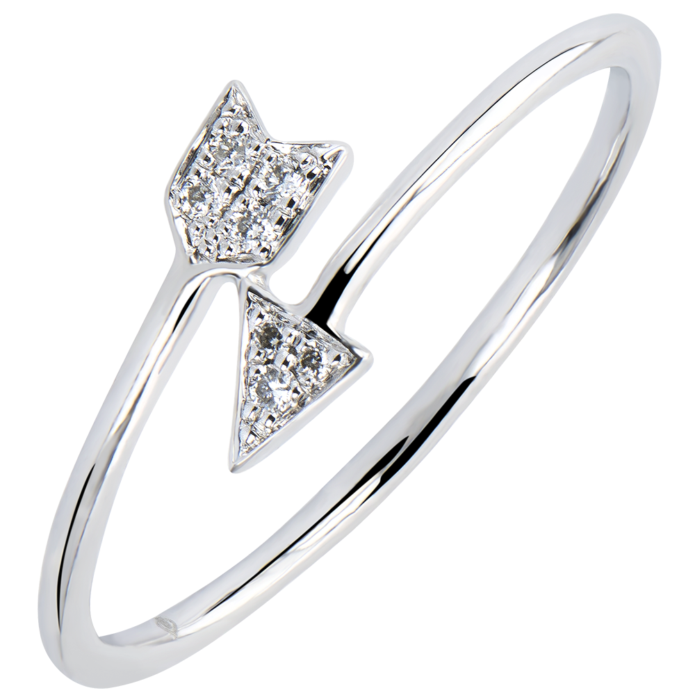 Un inel săgeată pavată, un mesaj pasional dar şi o declaraţie. Un model, amprentă a romantismului dar şi o notă rock.