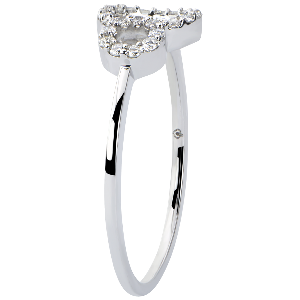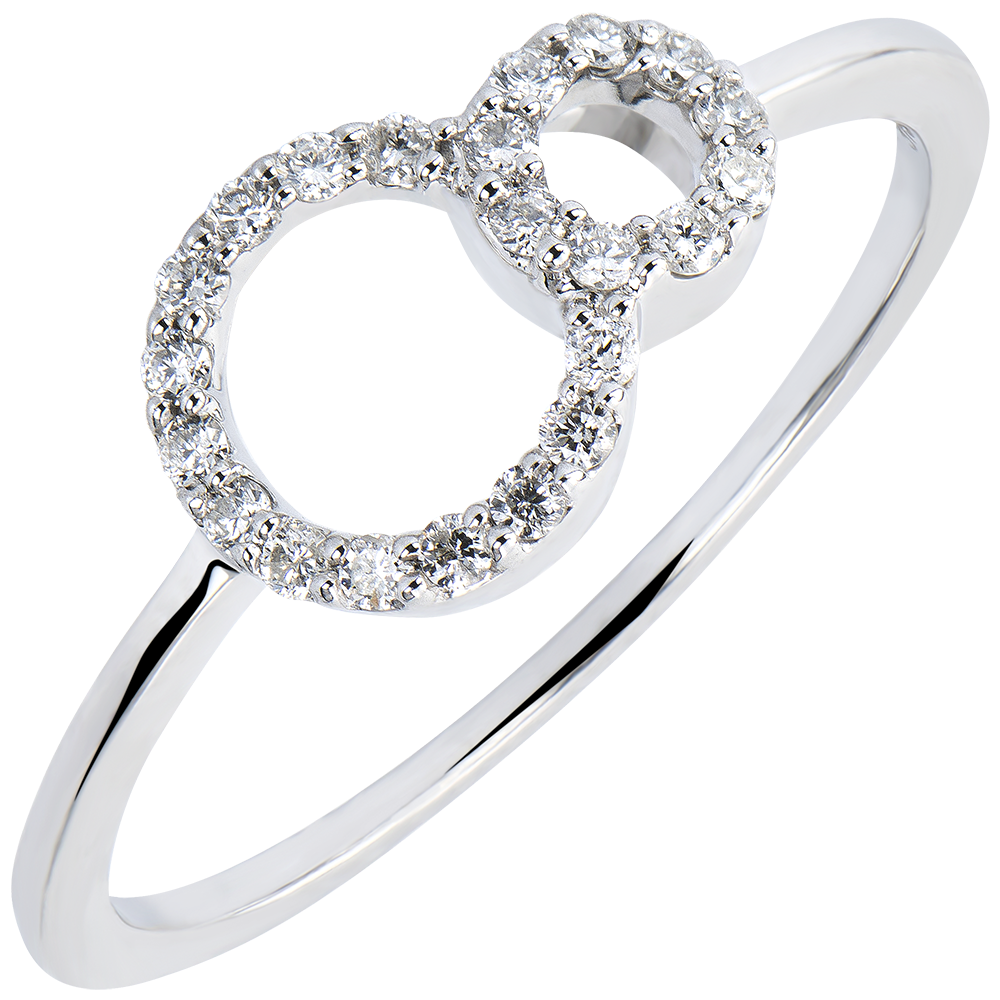Un inel nobil şi minimalist, compus dintr-o buclă pavată, simbol al infinitului. O montură sobră şi esenţială, întru totul contemporană.