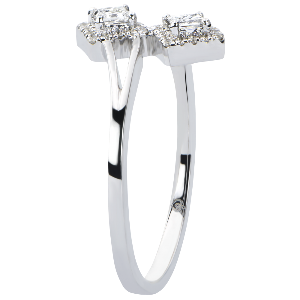 Inel Abundenţă - Tu & Eu Diamante tăiate Princess - aur alb 18K şi diamante