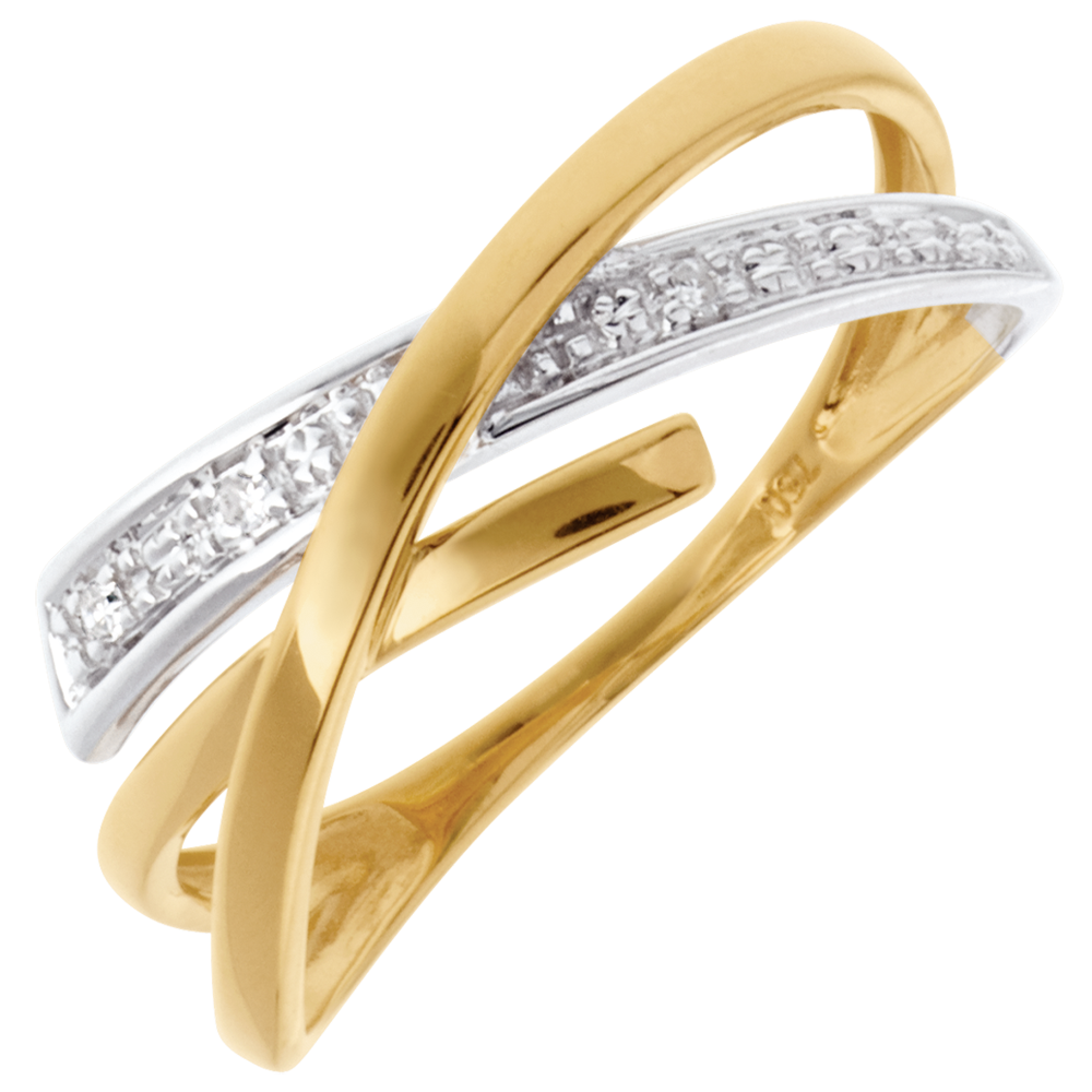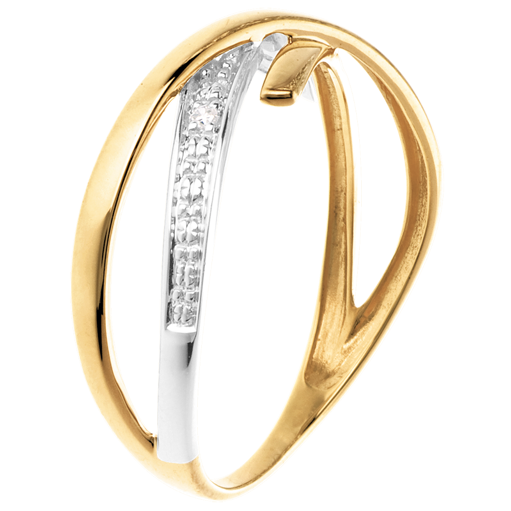 Inel Acrobaţie pavat - 3 diamante - aur alb şi aur galben de 18K