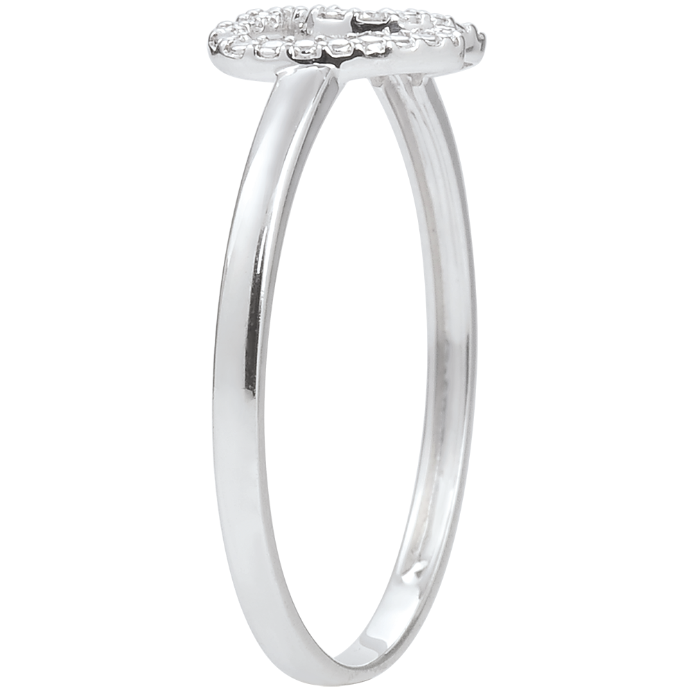 Acest inel cu o pereche de inimi din aur alb lucrat stil diamant şi încrustat cu diamante inspiră tandreţe şi complicitate.