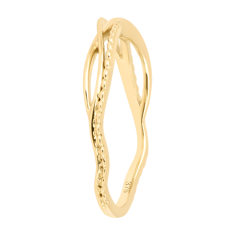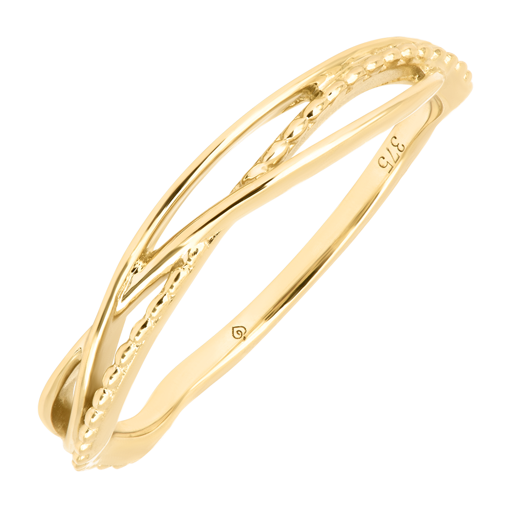Nu, inelul este realizat fără pietre pentru a evidenția designul creativ din aur galben 9 carate.