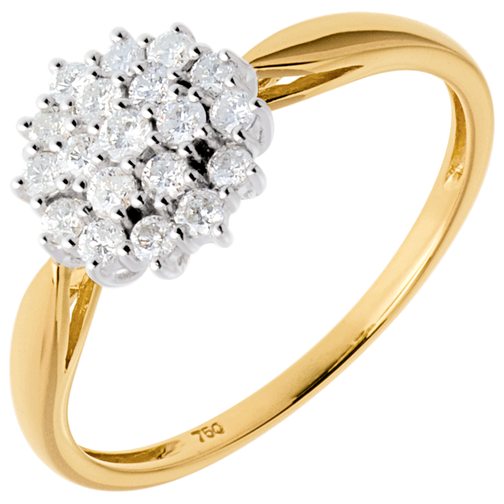 Inel Caleidoscop pavat cu diamante - 0.35 carate - 19 diamante - aur alb şi aur galben de 18K