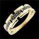 Două linii de aur punctate separate de linii de diamante negre. Un inel Clar Obscur modern şi feminin.